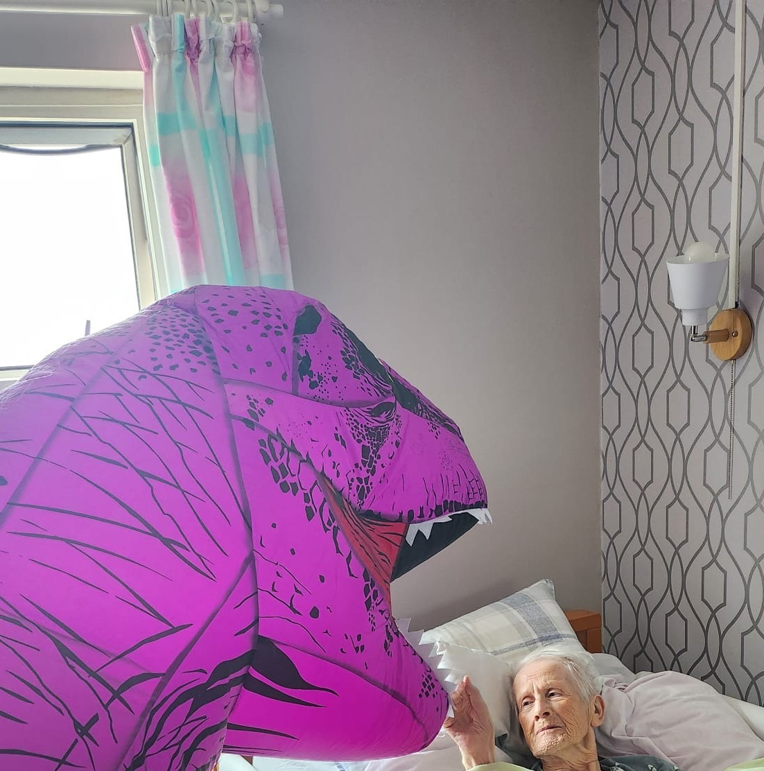Home Manager Gayle shared: ‘Everyone loved dressing up as characters, and Dino the dinosaur was a big hit. It was an afternoon of a lot of chatting and laughter!’