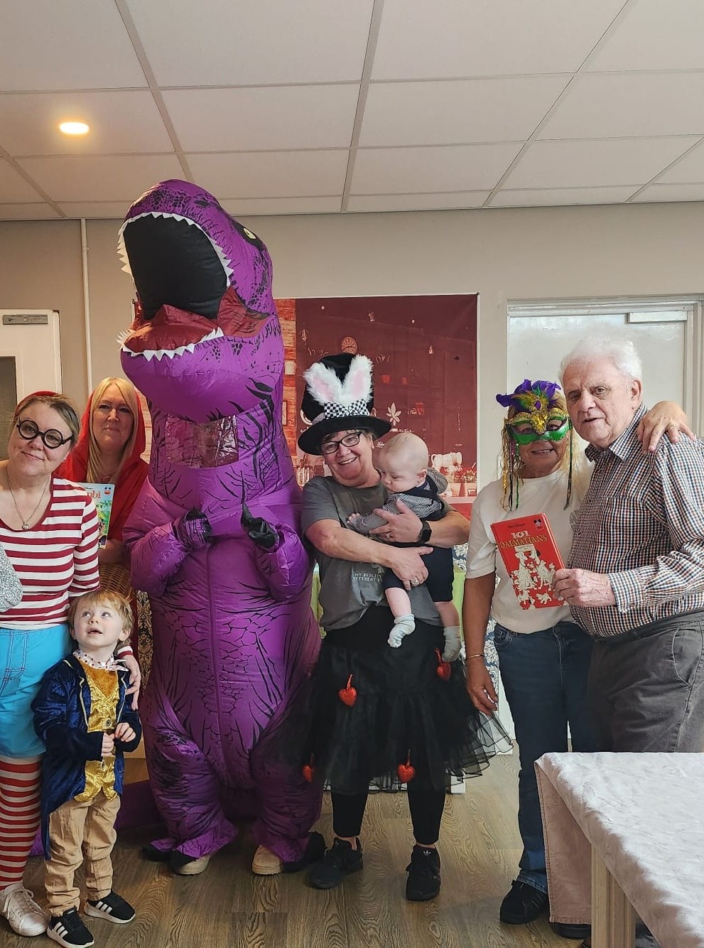 Team members at Edenmore Nursing Home wore costumes inspired by Where’s Wally, Little Red Riding Hood and Alice in Wonderland, and there was also a special visit from ‘Dino’ the dinosaur, a purple inflatable dinosaur worn by one of the team!